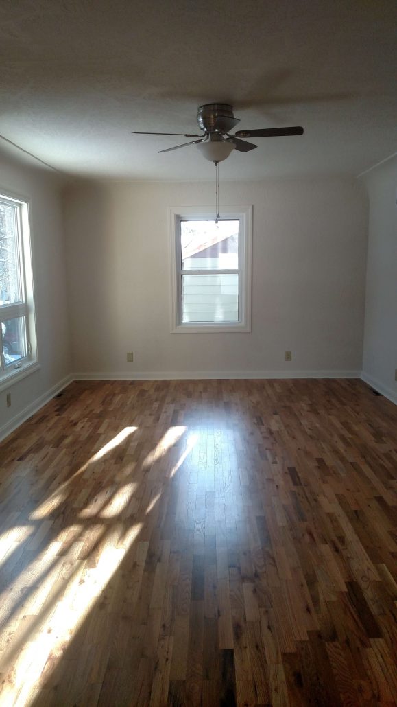 This home had significant water damage to the floor and other areas. We used drying fans and humidifiers to mitigate the water damage, then removed wet drywall, baseboards, walls, and more to correct hidden structural issues. We finished the job with fresh paint and trim to create a fresh look.