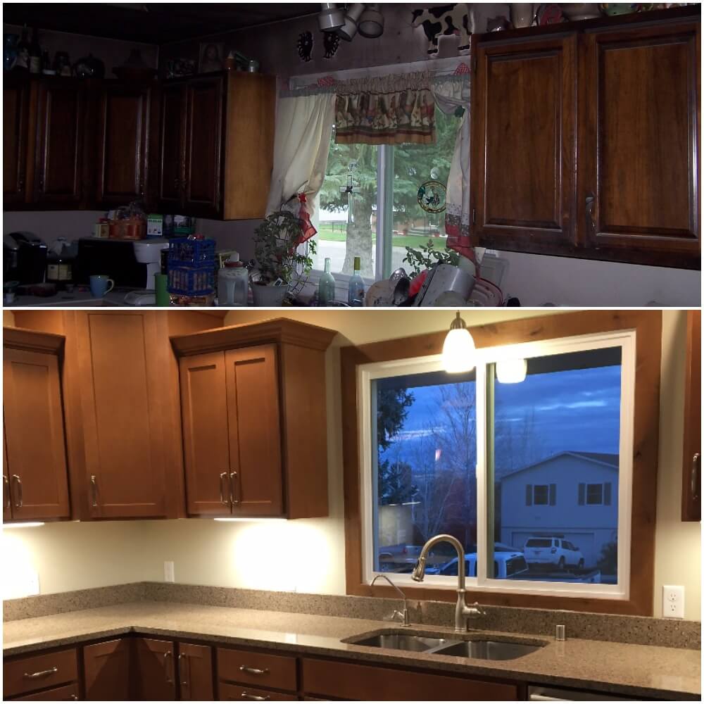 To create a more efficient bathroom space, we added a half-bath area with a toilet and upgraded the wooden finish-outs as well as the countertop. In the kitchen, we installed a new countertop as well as new windows to brighten up the room and make it more efficient.
