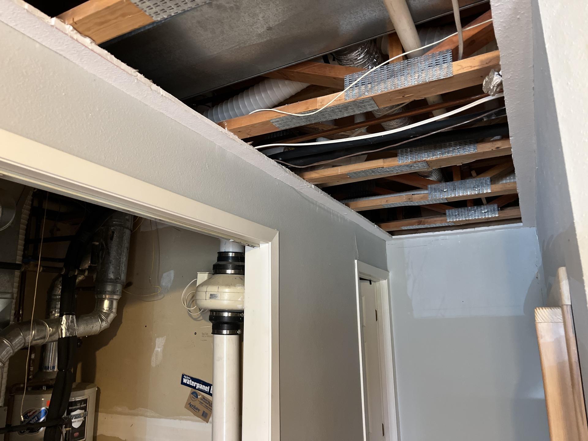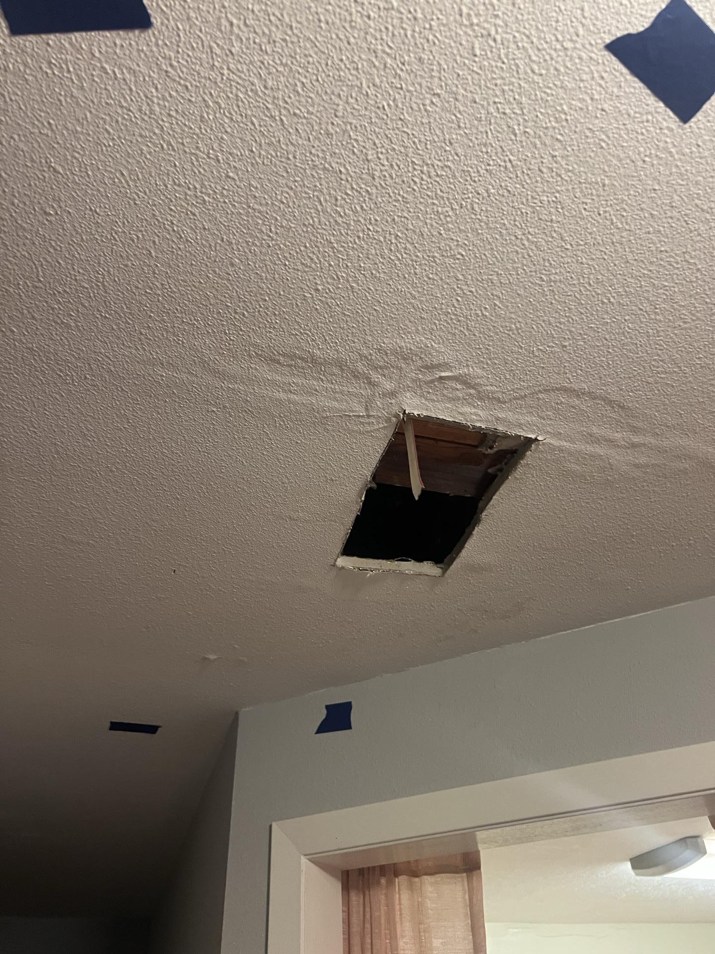 While setting up the containment wall, the ceiling light’s glass cover was accidentally bumped and shattered. Our team immediately informed the homeowner of the incident, safely cleaned up the broken glass, and ensured the area was left secure and safe before continuing work.