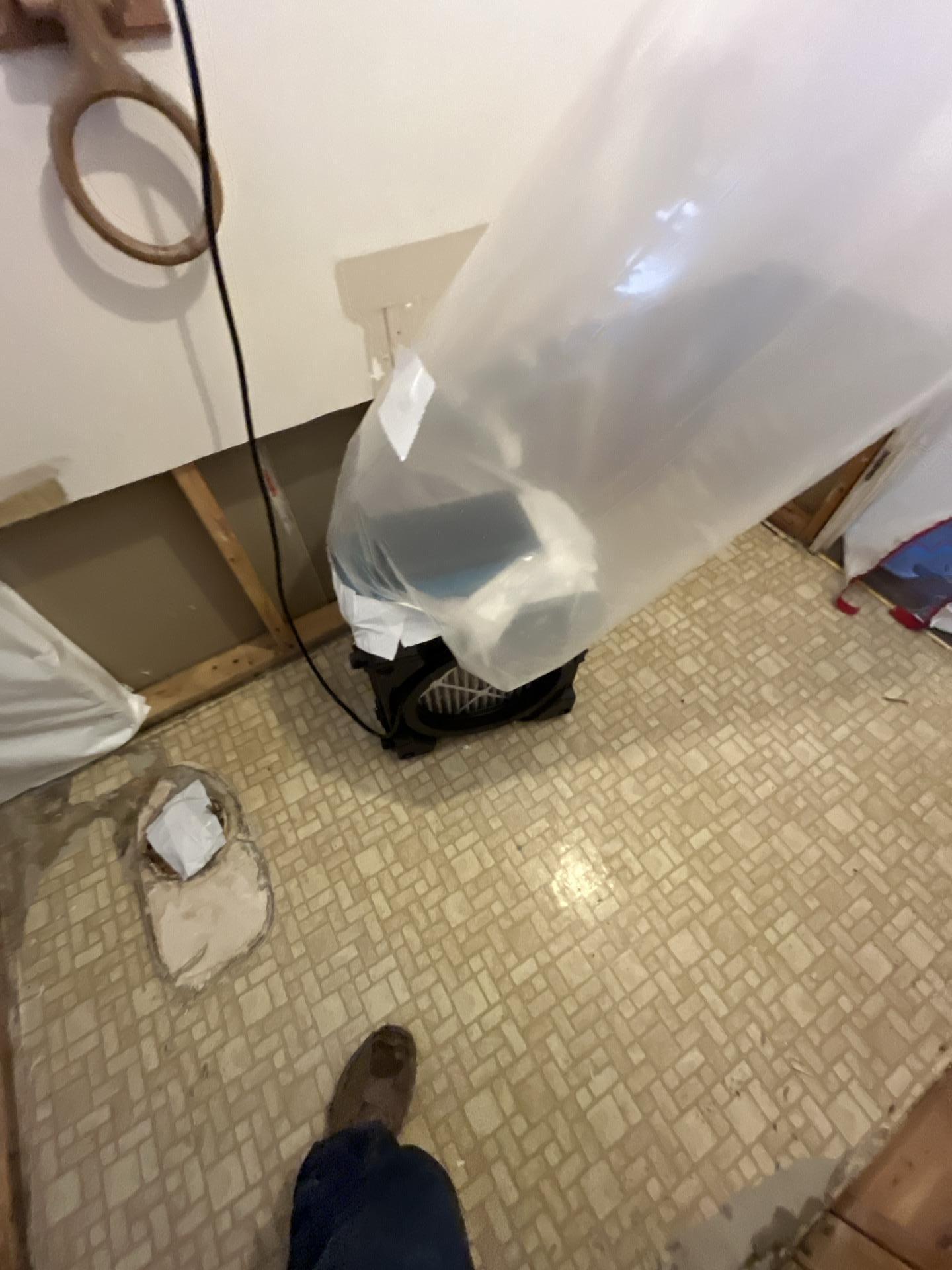 Our team provided comprehensive mold removal and water damage restoration services. This included water extraction, demolition of affected materials like drywall and flooring, and the setup of drying equipment with containment. We thoroughly addressed all impacted areas, including the basement bedroom, closet, bathroom, and hallway, to ensure complete remediation.