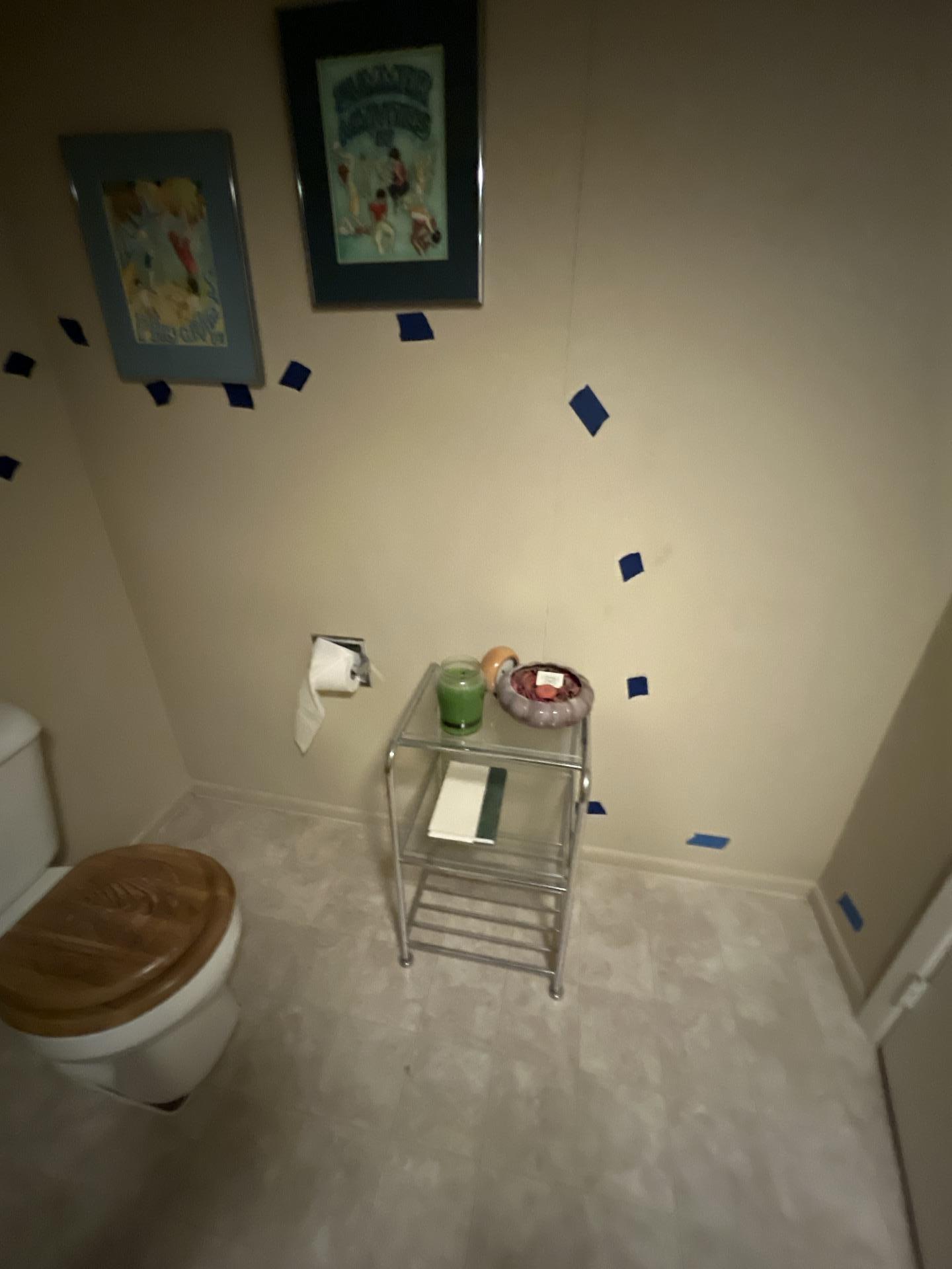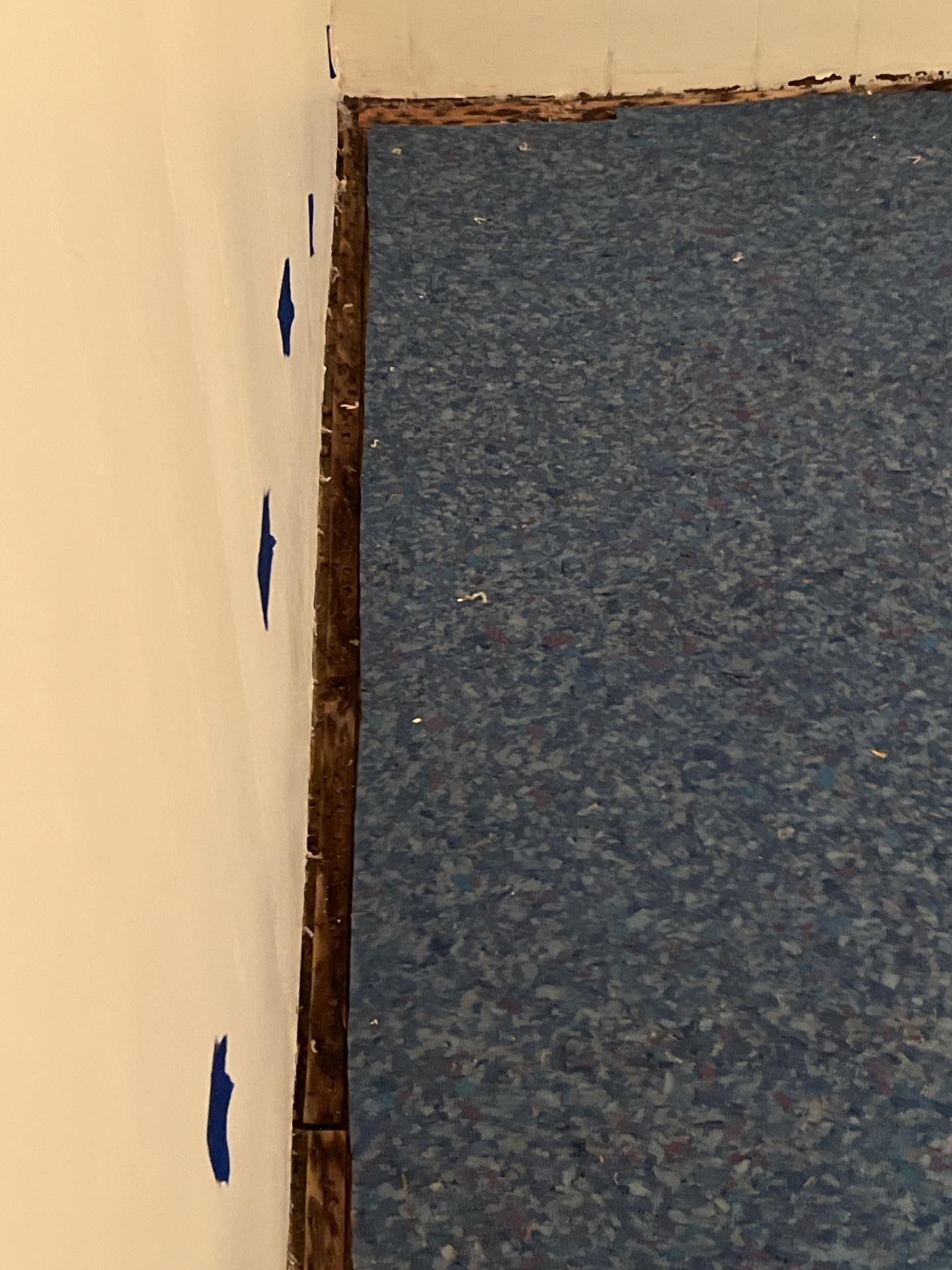 An on-site inspection was conducted to assess the reported wet areas. Moisture readings confirmed high saturation in the affected paneled walls in both the living room and bathroom. Carpet was folded back to reveal underlying moisture issues, and the extent of damage to tack strips and baseboards was documented. Attempts were made to recreate the leak by running toilet, sink, and shower on all levels, but the source remained elusive. Macros for demo, drying, and docusketch were completed to plan for the necessary restoration work.