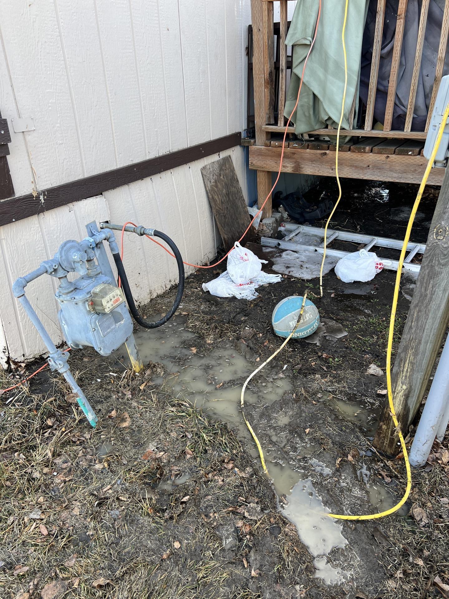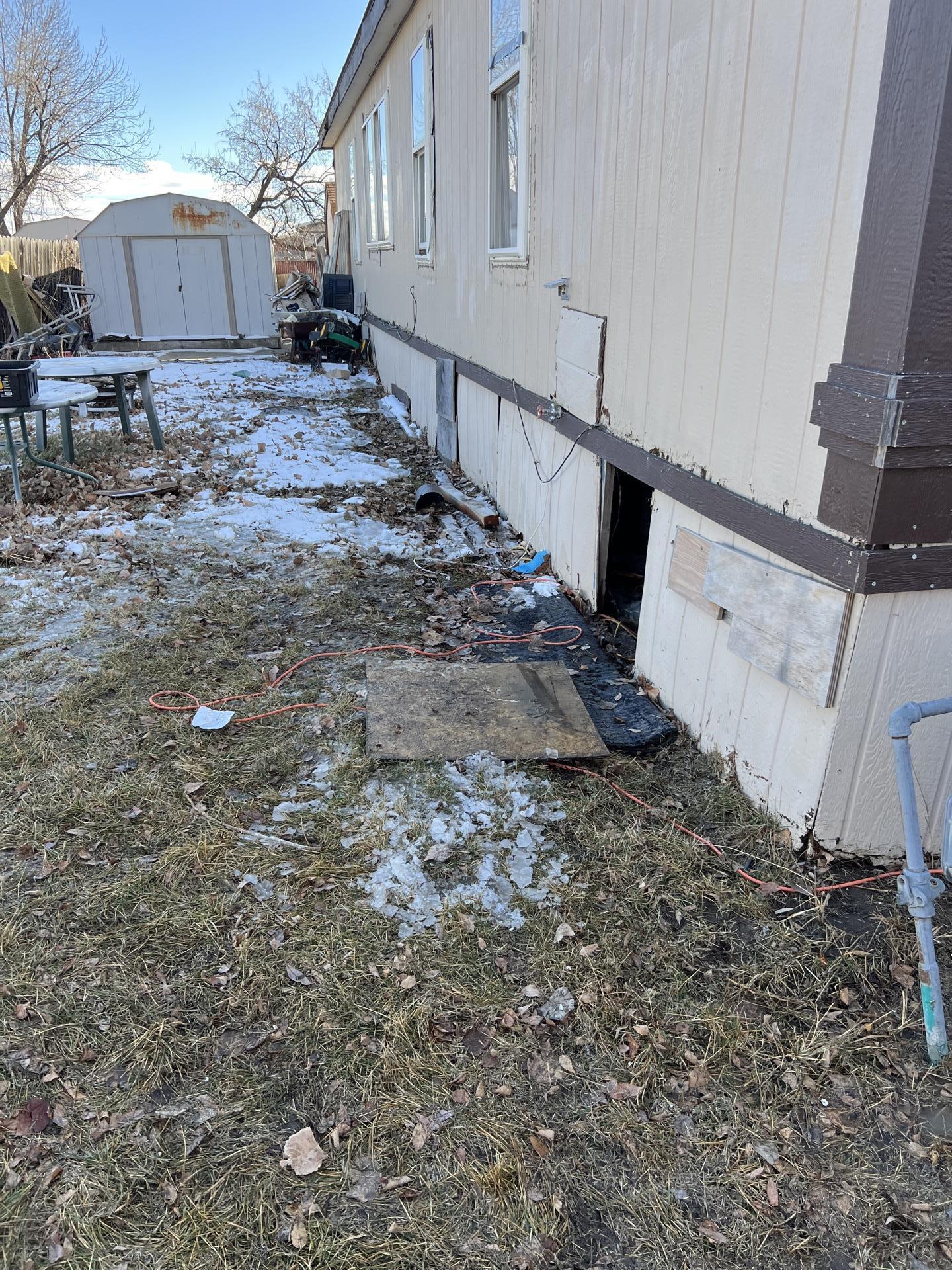 The customer experienced significant water damage affecting the exterior of their mobile home and the crawlspace underneath, leading to standing water, saturated materials, and a need for immediate restoration.