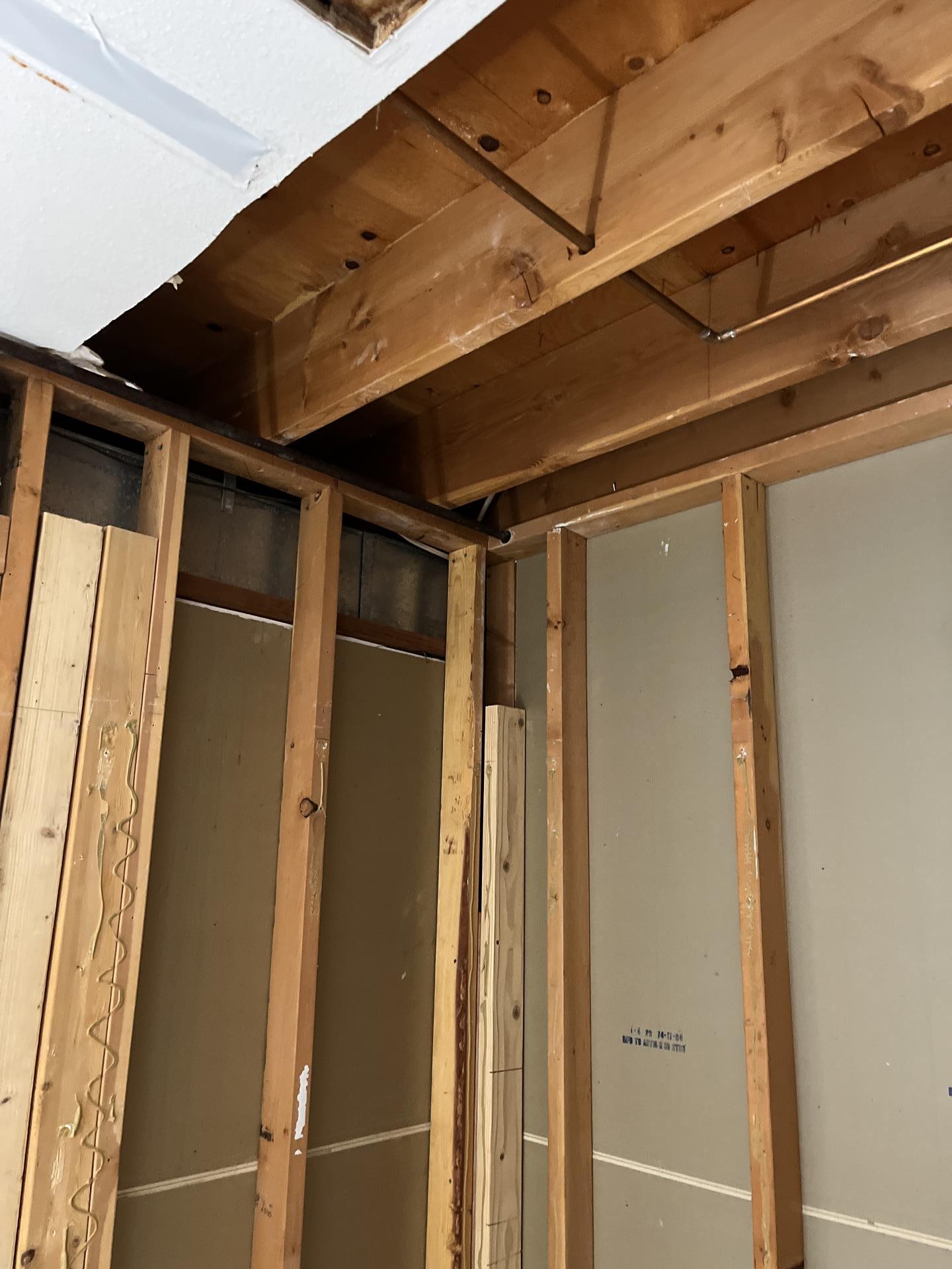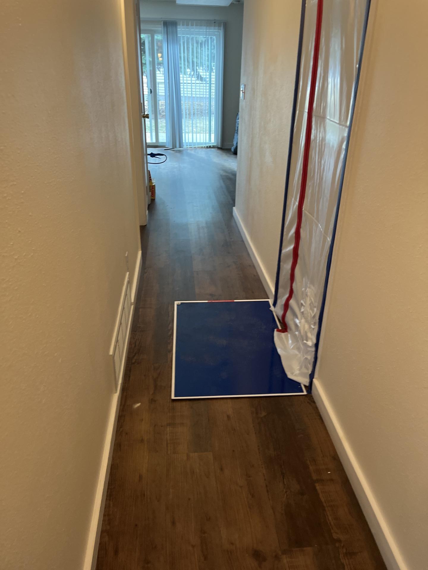 Alpha Omega Restoration Pros performed comprehensive water damage restoration services. This included initial water extraction and drying of the affected areas. Extensive demolition of damaged materials such as drywall and possibly flooring was carried out, revealing structural components for thorough drying and inspection. The team implemented containment measures to isolate work areas, likely for mold remediation and to prevent further contamination. Finally, reconstruction efforts were undertaken, including repairing or replacing drywall, ceilings, and flooring in the lower hallway, bedroom, bathroom, and living room to restore the property to its pre-damage condition.