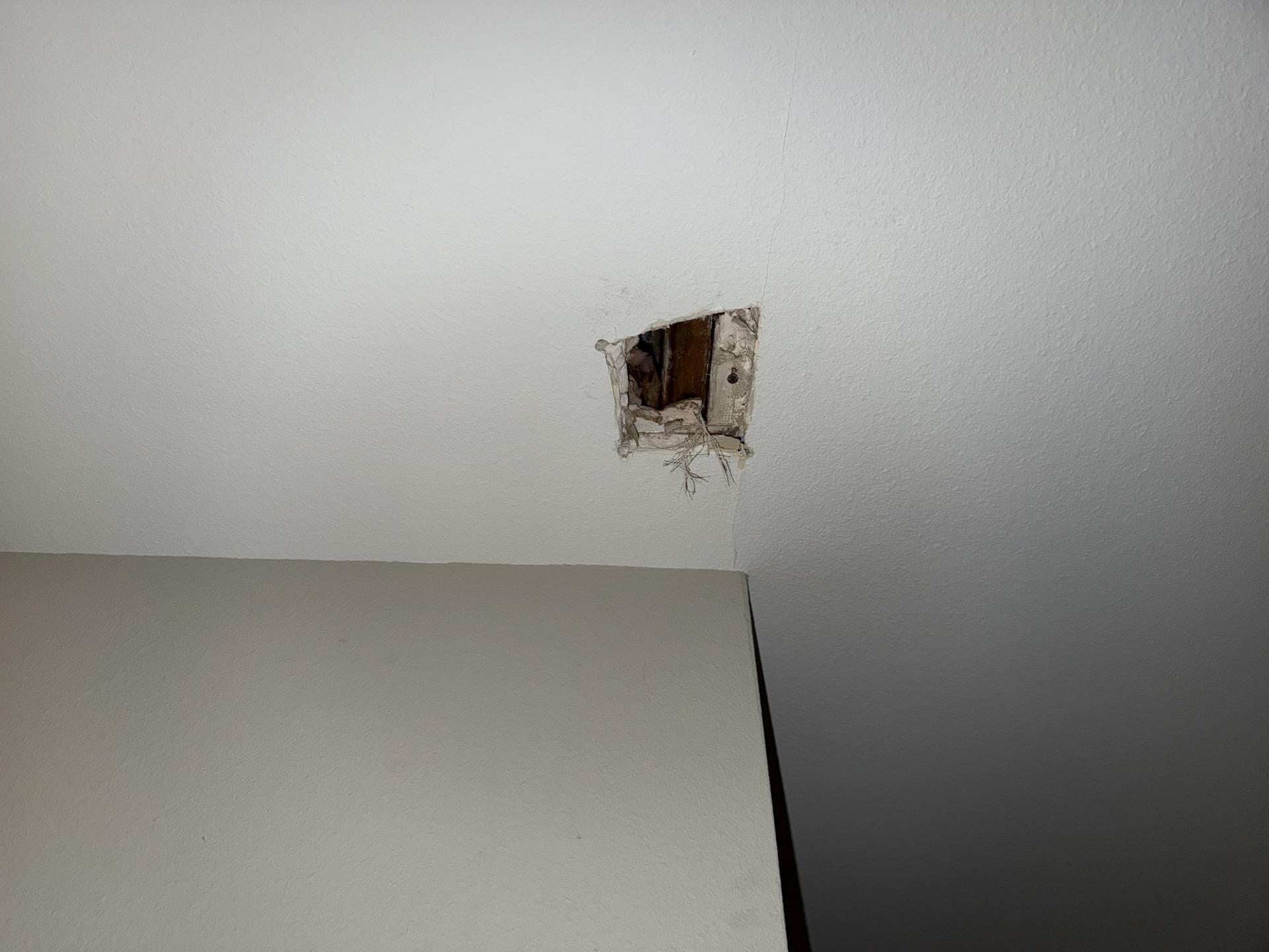 A roof drain failure resulted in water damage affecting the ceiling cavity above a storage/breakroom area, requiring immediate mitigation and mold remediation.